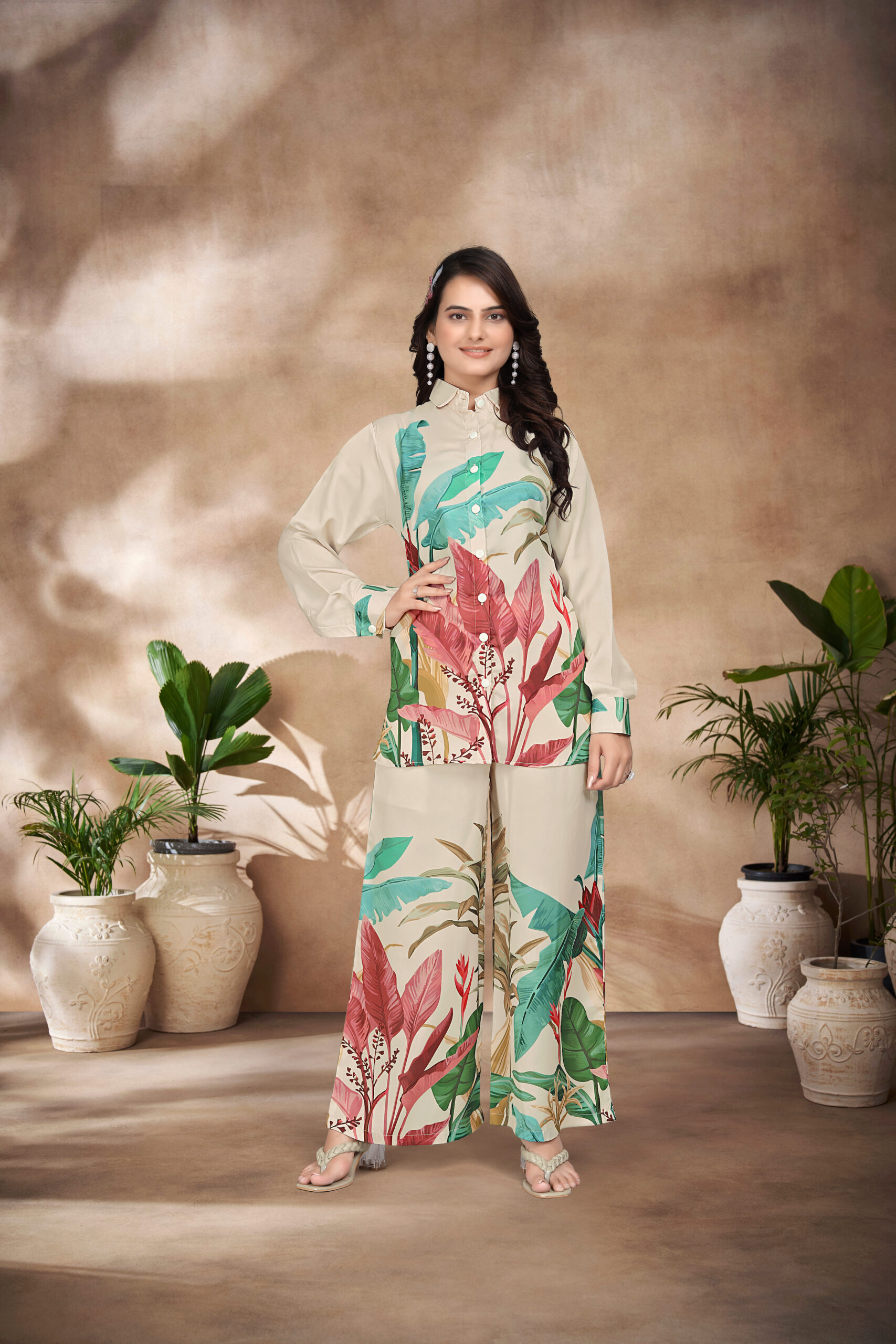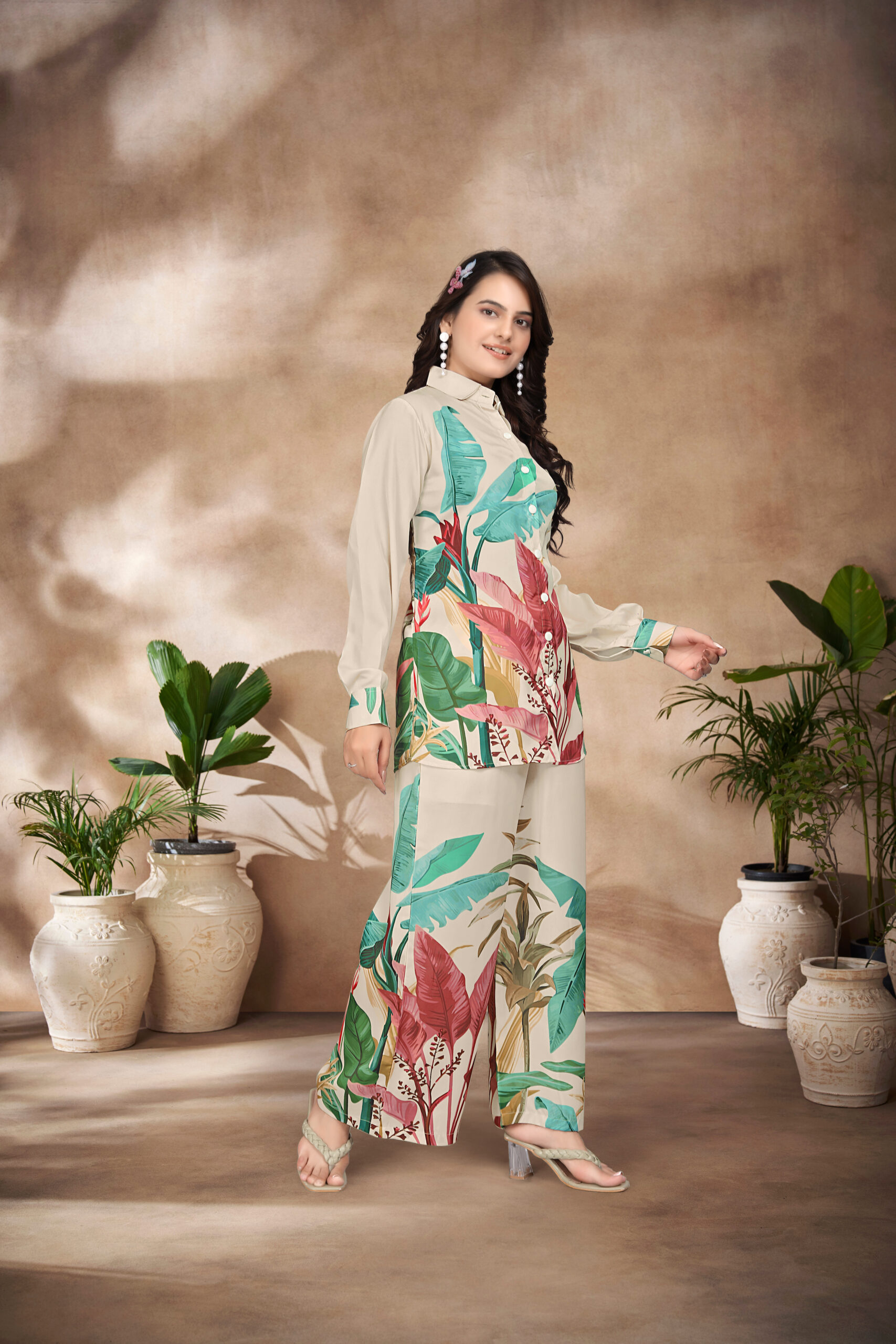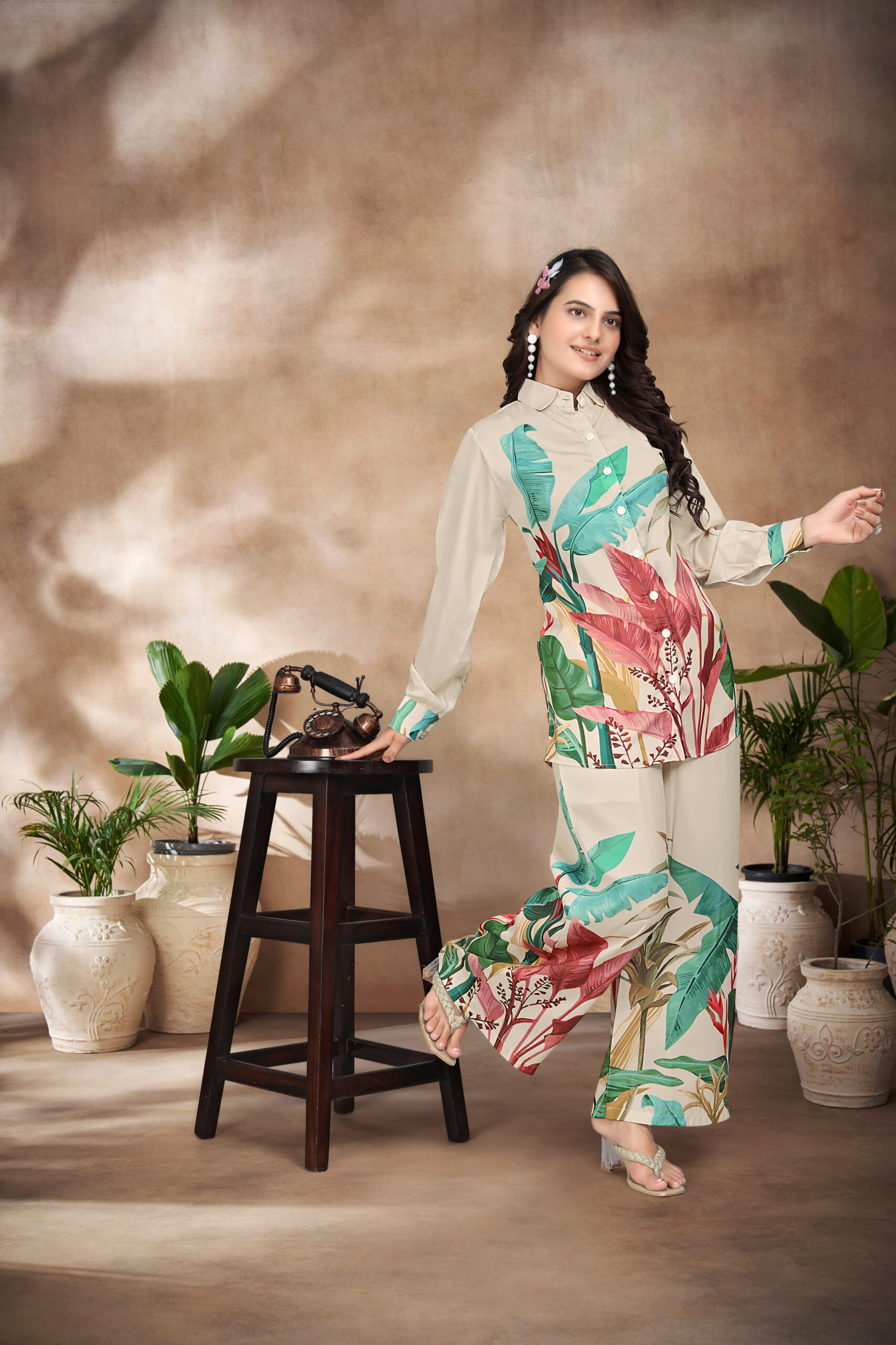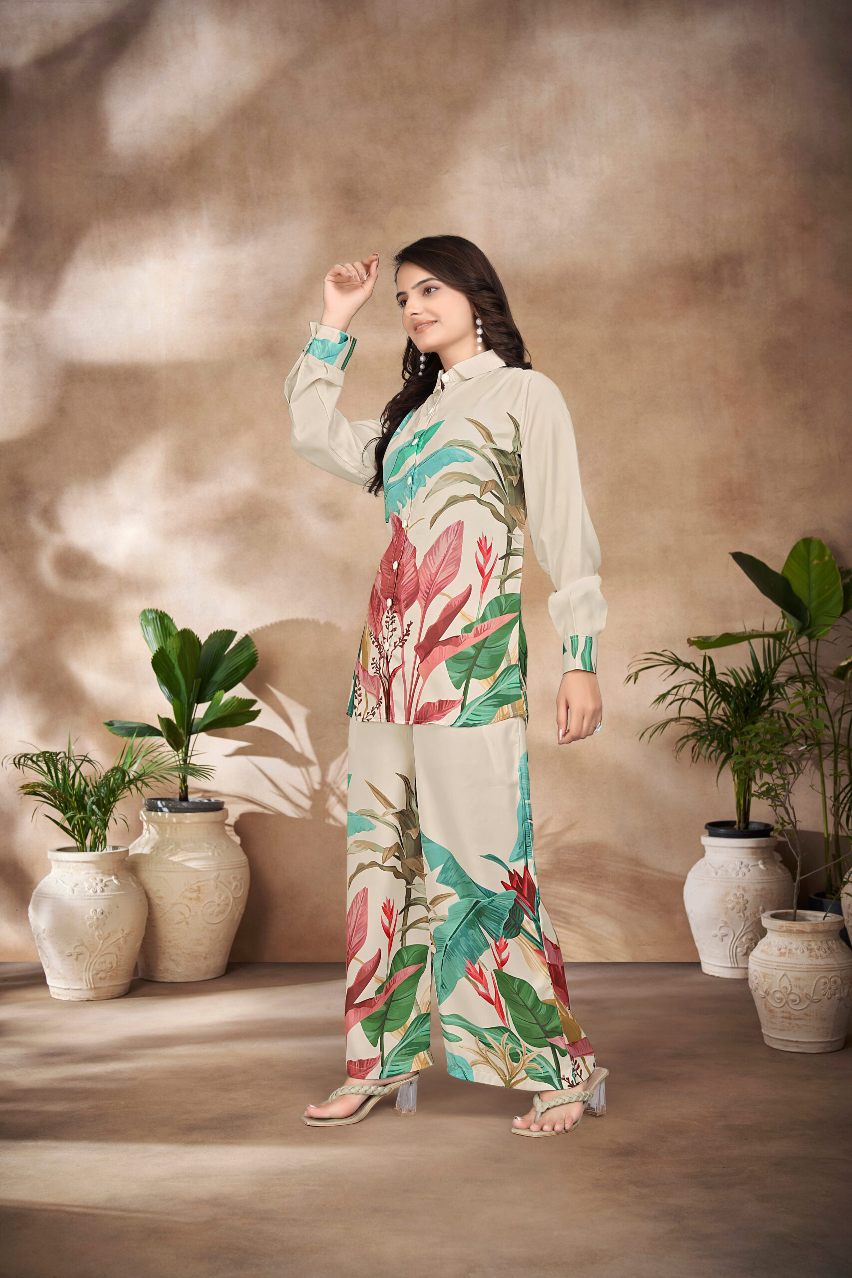 A1001 DIGITAL PRINTED SWISS SILK SATIN CO-ORD SET