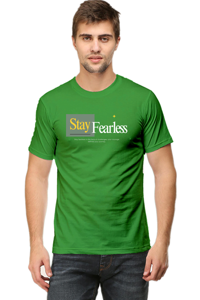 Stay Fearless Flag Green Male Round Neck Half Sleeve Tees