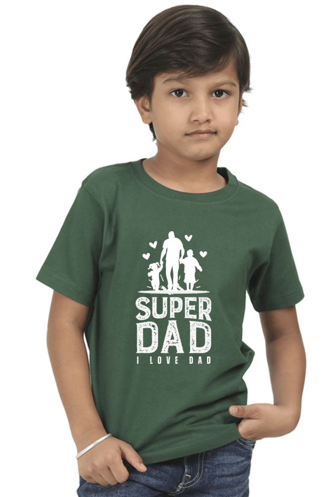 Super Dad White & Bottle Green Boy Round Neck Half Sleeve Classic??Tees