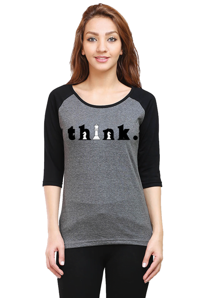 Think Black Charcoal Melange Female Raglan Full Sleeve Tees